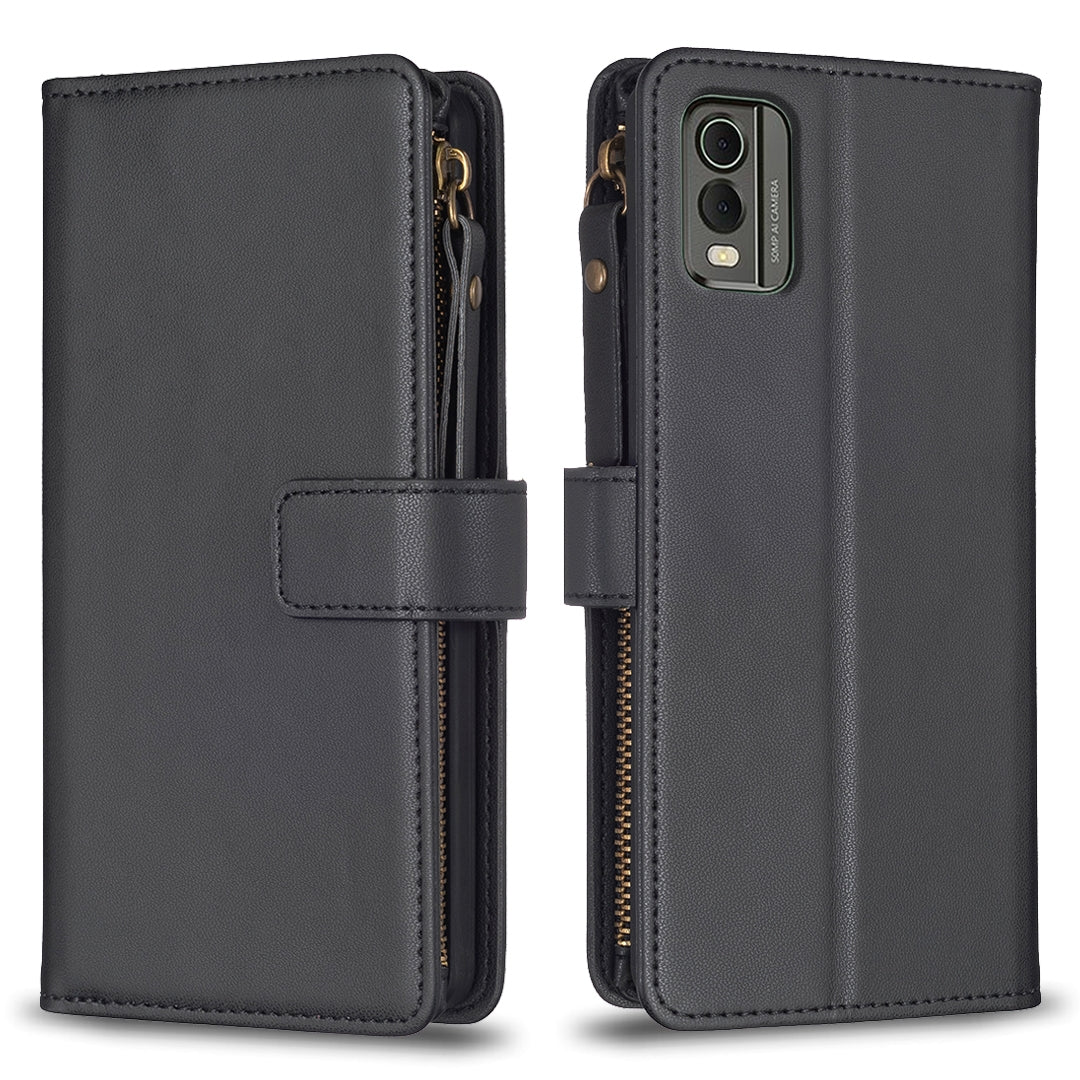 Nokia C32 Leather Flip Wallet Phone Case with 9 Card Slots, Zipper Compartment, and Adjustable Stand