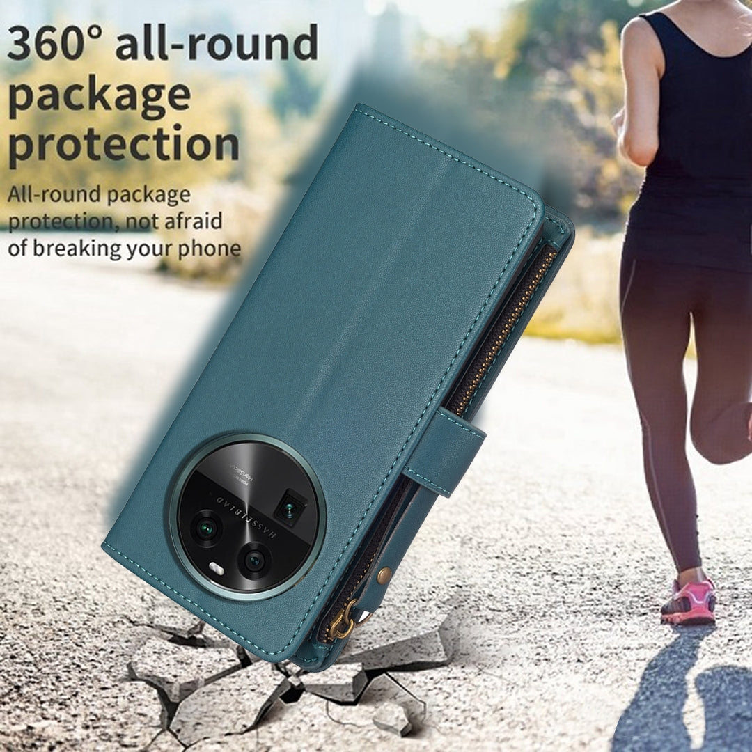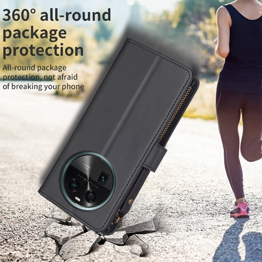 OPPO Find X6 Leather Flip Wallet Phone Case with 9 Card Slots, Zipper Compartment, and Adjustable Stand