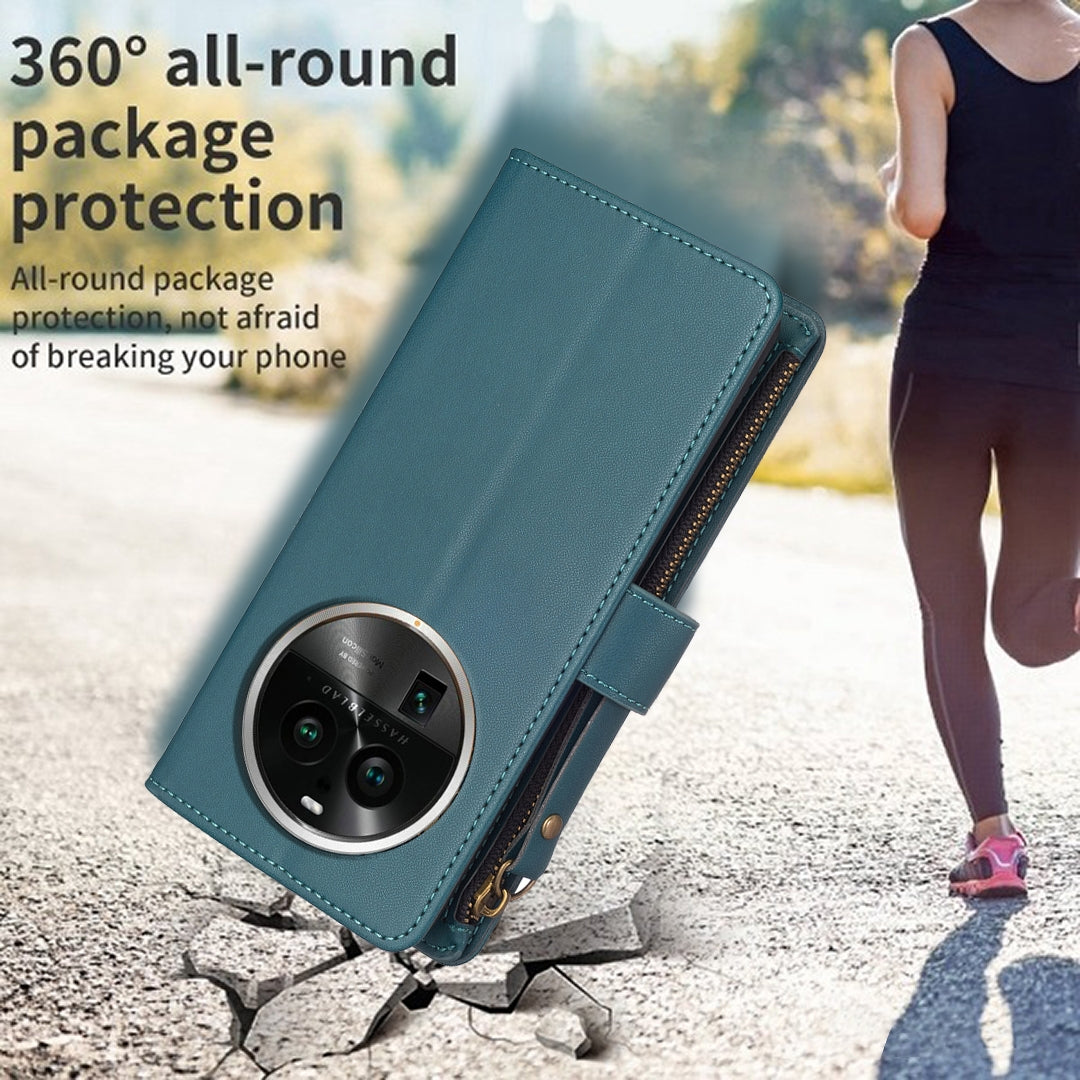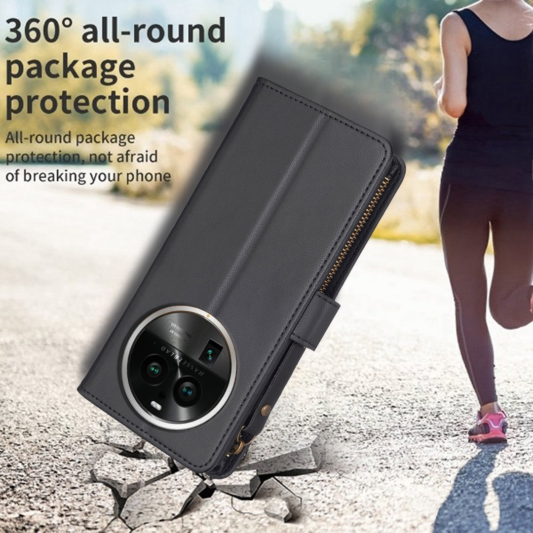 OPPO Find X6 Pro Leather Flip Wallet Phone Case with 9 Card Slots, Zipper Compartment, and Adjustable Stand