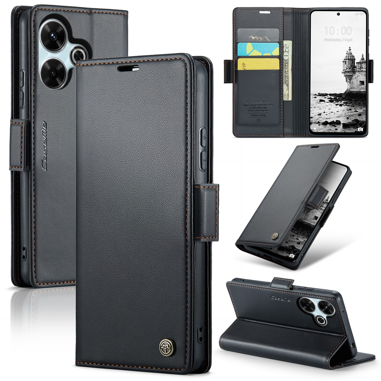 Redmi 13 Leather Wallet Case - RFID Blocking, Stand Function, Card Slots