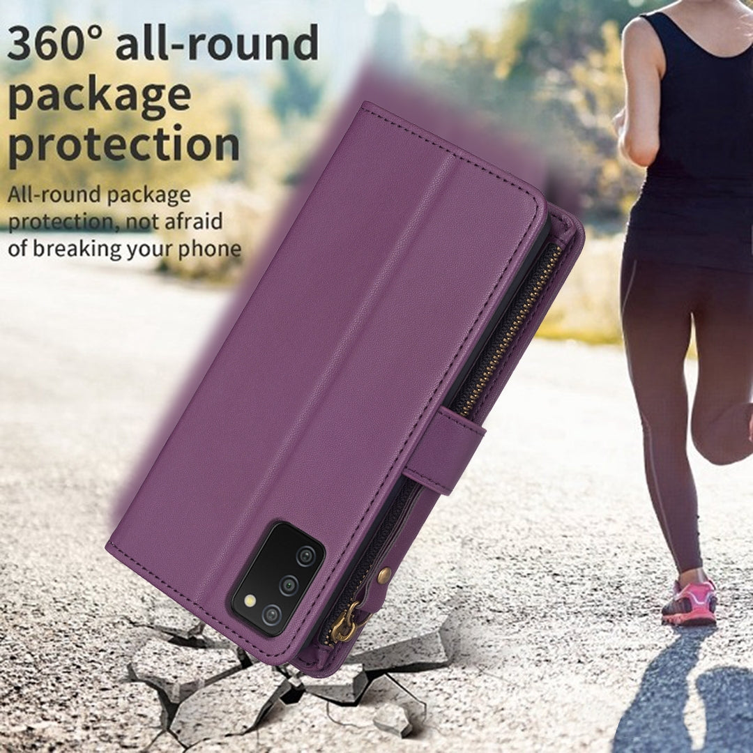 Samsung Galaxy A03s Leather Flip Wallet Phone Case with 9 Card Slots, Zipper Compartment, and Adjustable Stand
