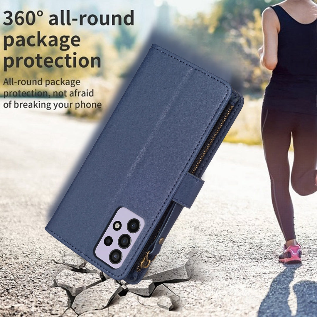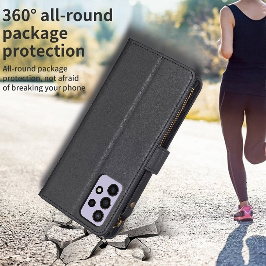 Samsung Galaxy A72 Leather Flip Wallet Phone Case with 9 Card Slots, Zipper Compartment, and Adjustable Stand