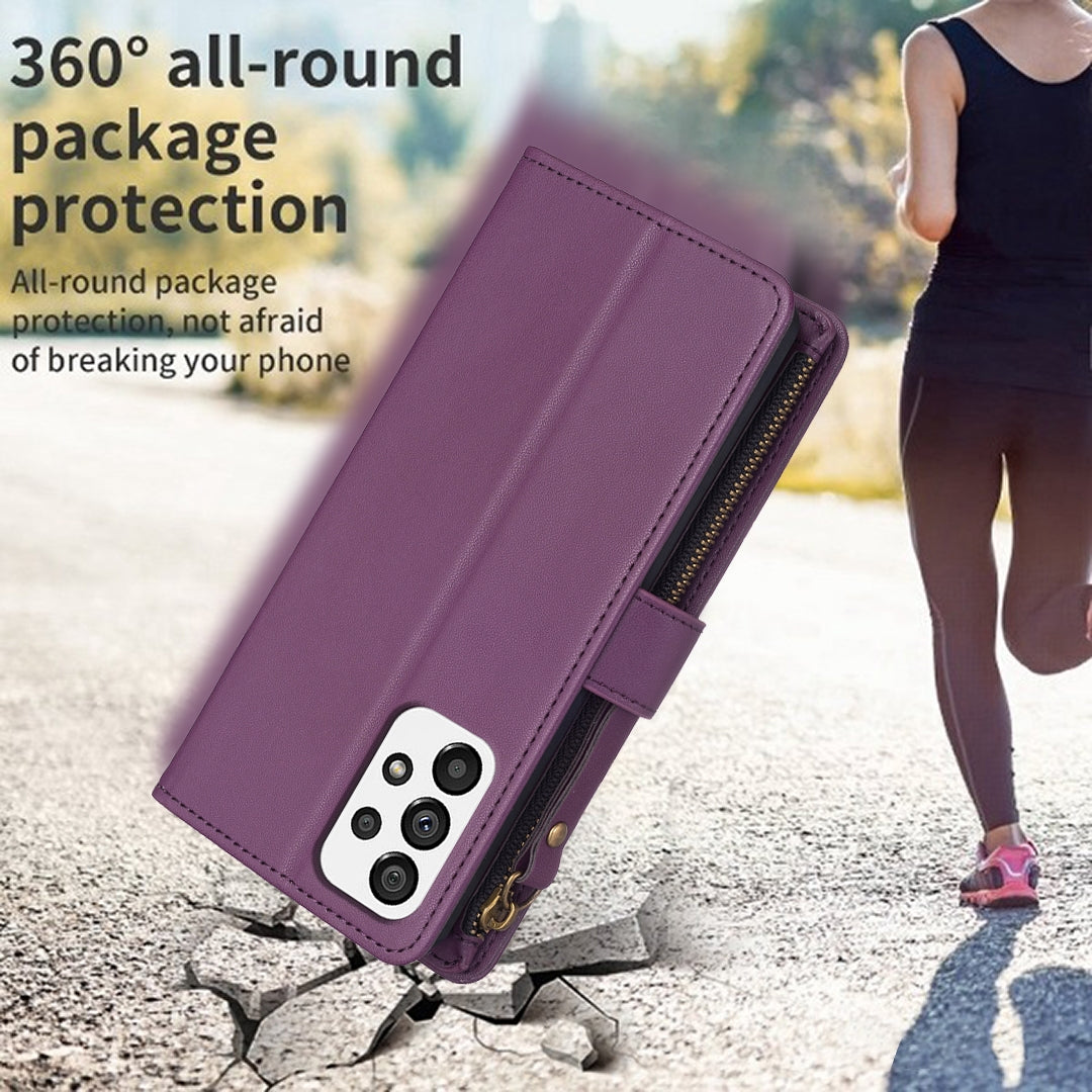 Samsung Galaxy A73 5G Leather Flip Wallet Phone Case with 9 Card Slots, Zipper Compartment, and Adjustable Stand