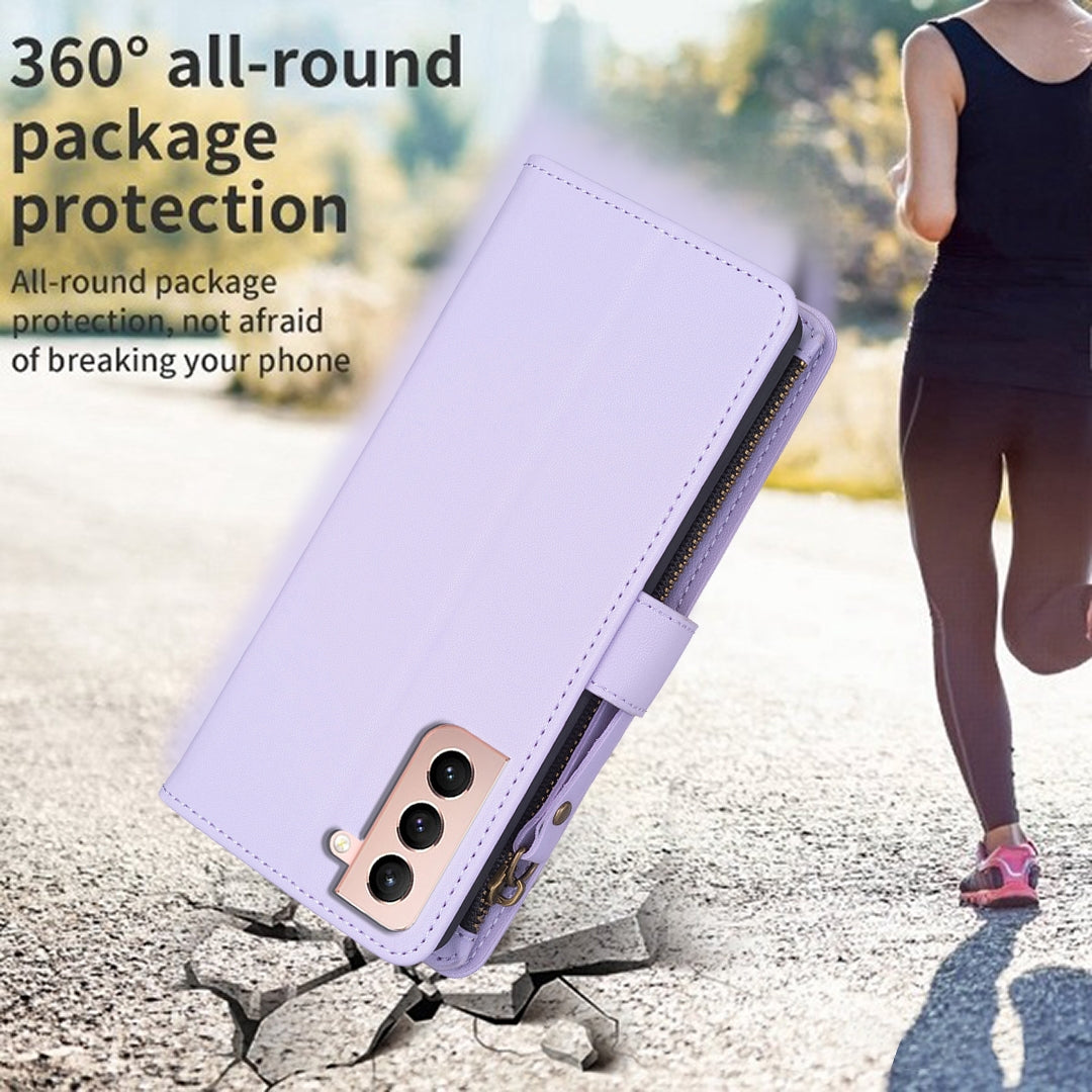 Samsung Galaxy S21 5G Leather Flip Wallet Phone Case with 9 Card Slots, Zipper Compartment, and Adjustable Stand