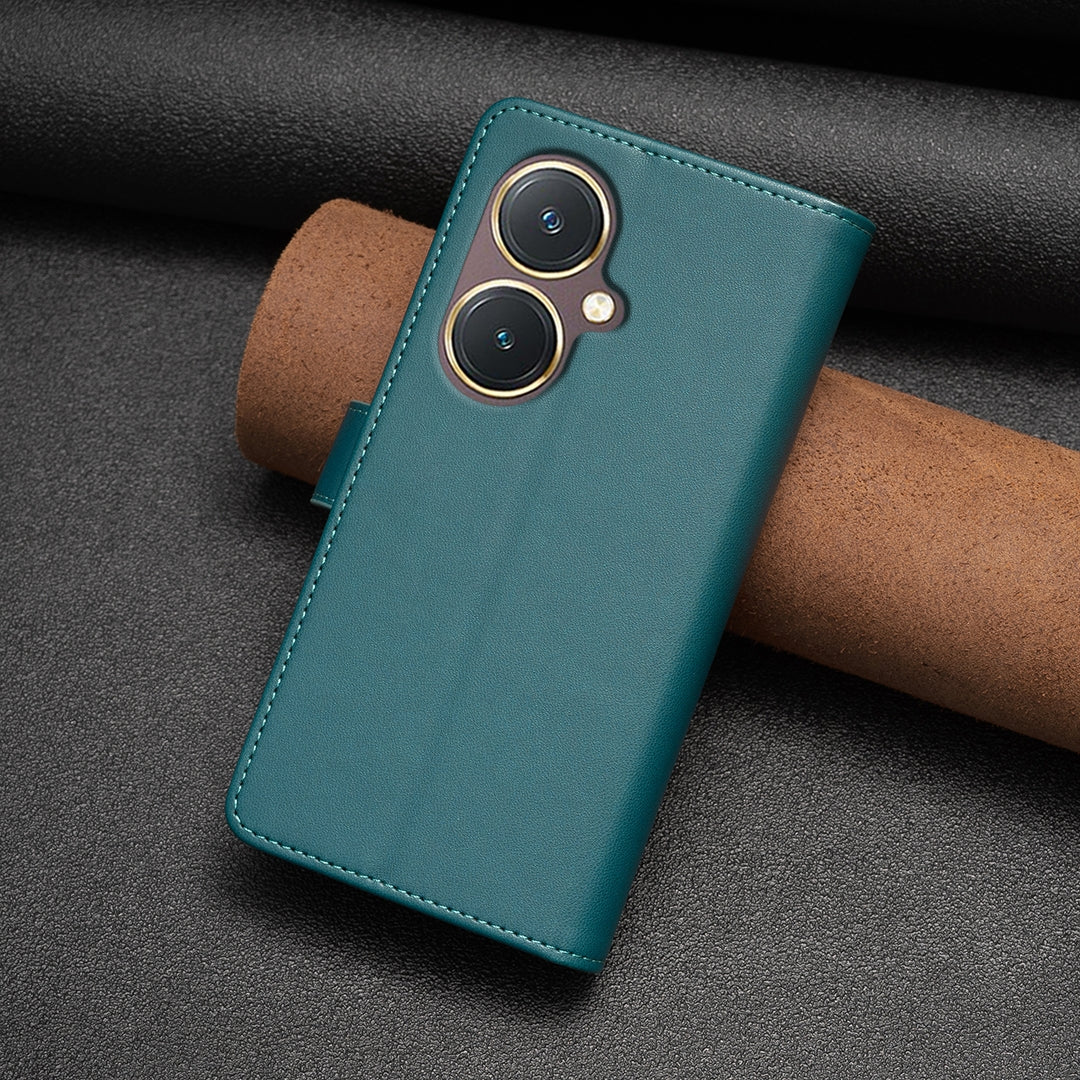 vivo Y27 4G Leather Flip Wallet Phone Case with 9 Card Slots, Zipper Compartment, and Adjustable Stand