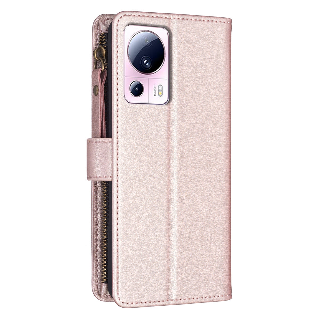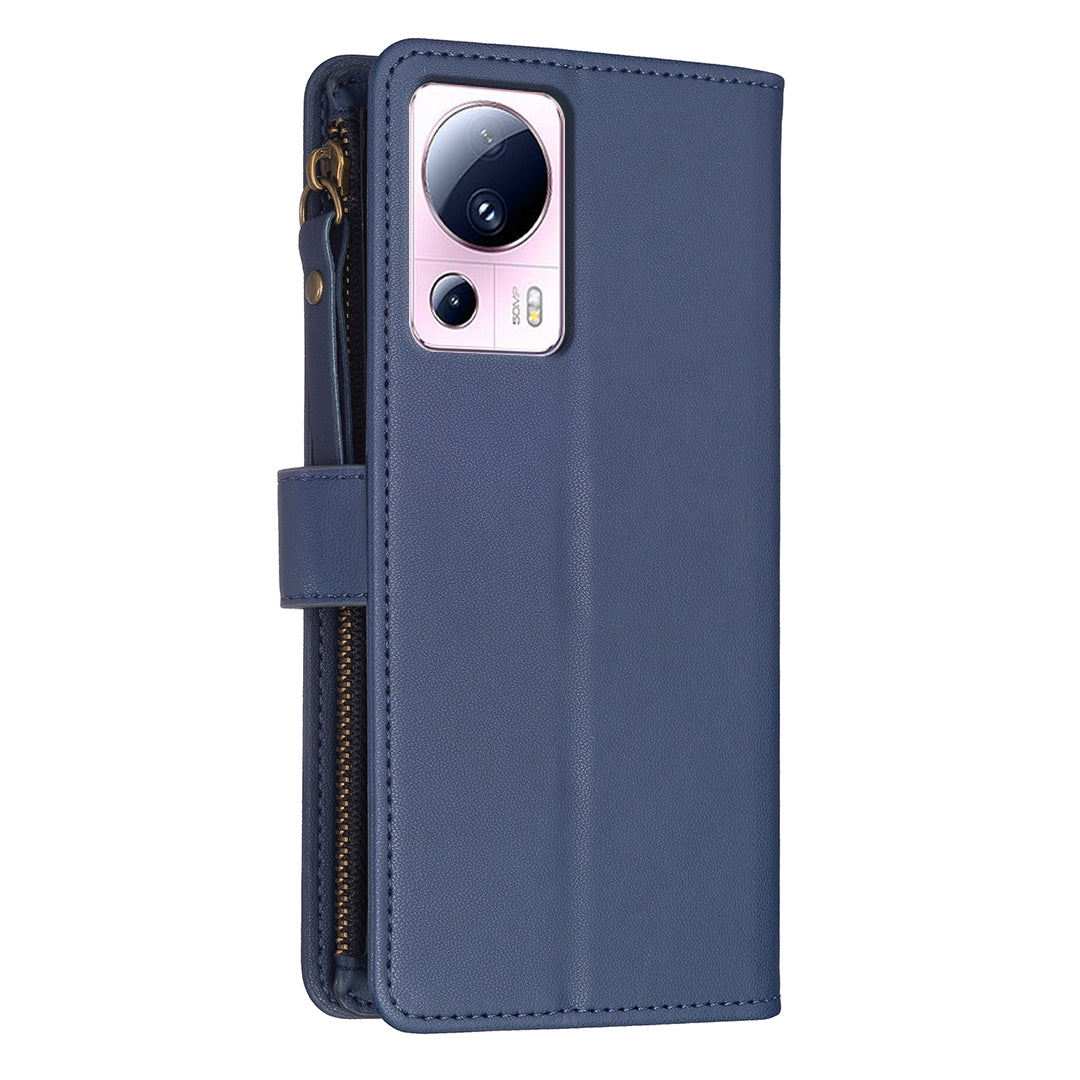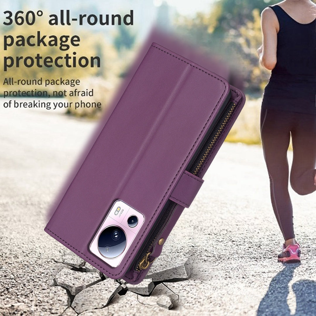 Xiaomi 13 Lite Leather Flip Wallet Phone Case with 9 Card Slots, Zipper Compartment, and Adjustable Stand
