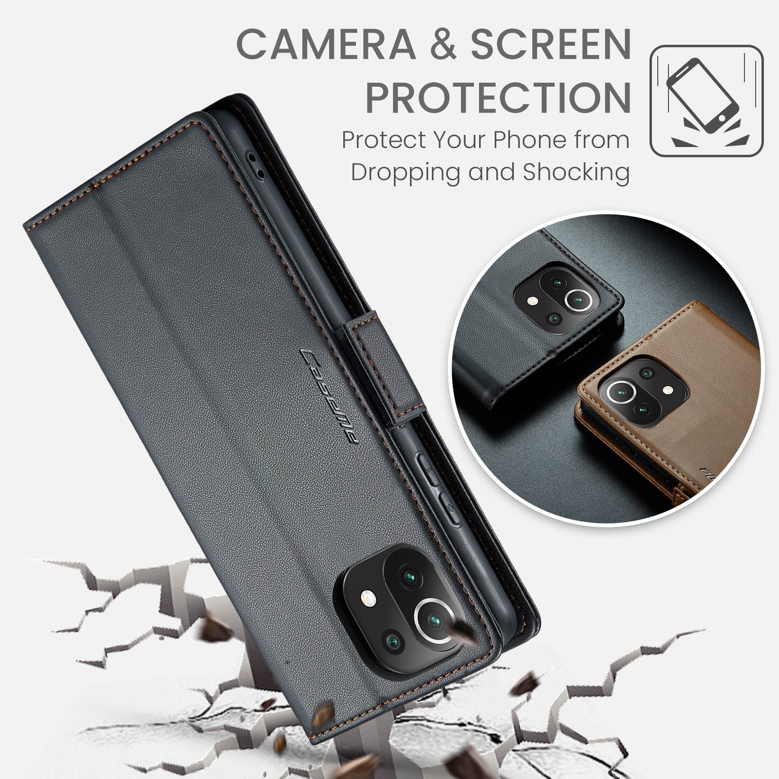 Xiaomi Mi 11 Lite Leather Wallet Case - RFID Blocking, Stand Function, Card Slots