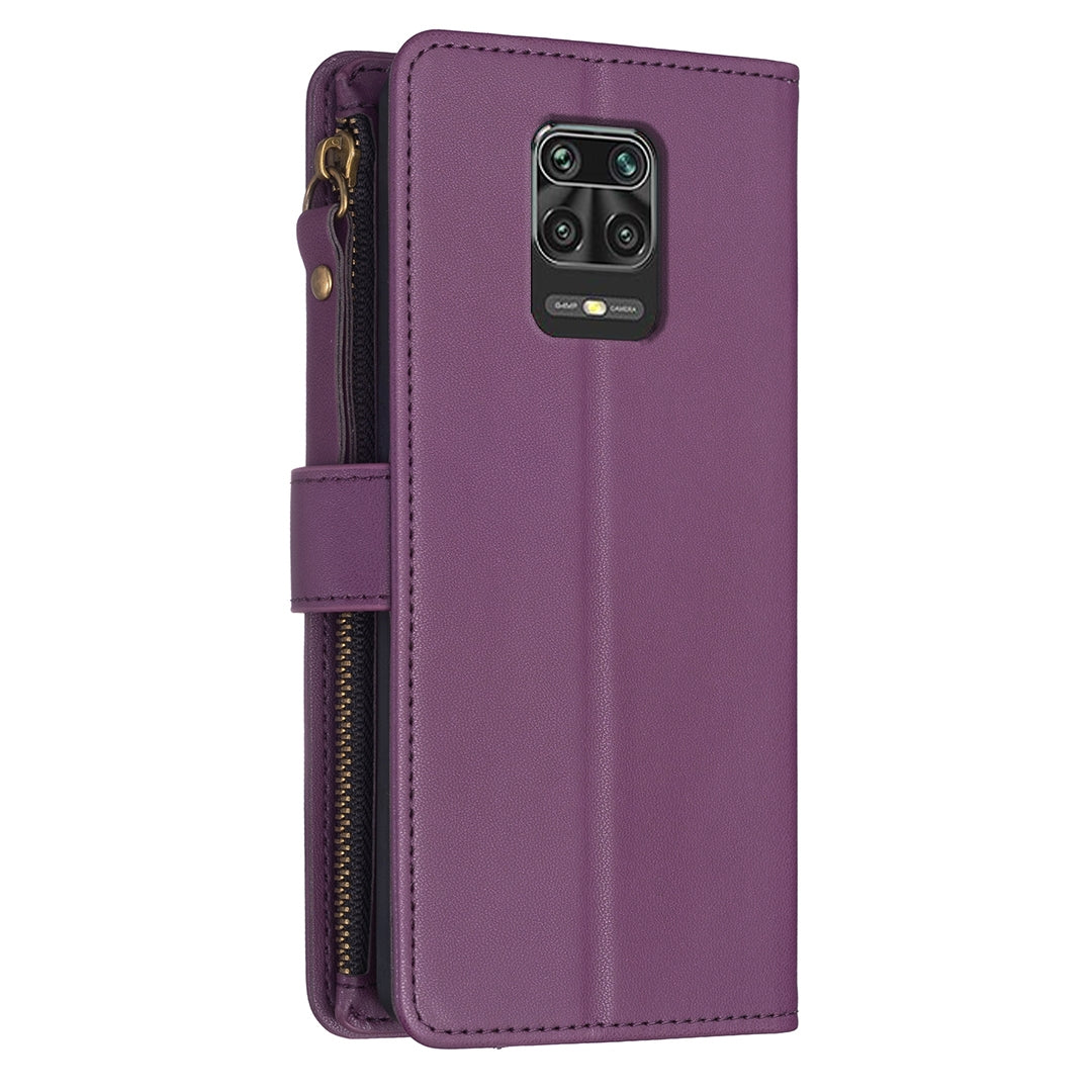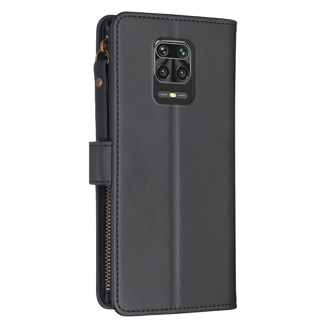 Xiaomi Redmi Note 9 Pro Max Leather Flip Wallet Phone Case with 9 Card Slots, Zipper Compartment, and Adjustable Stand